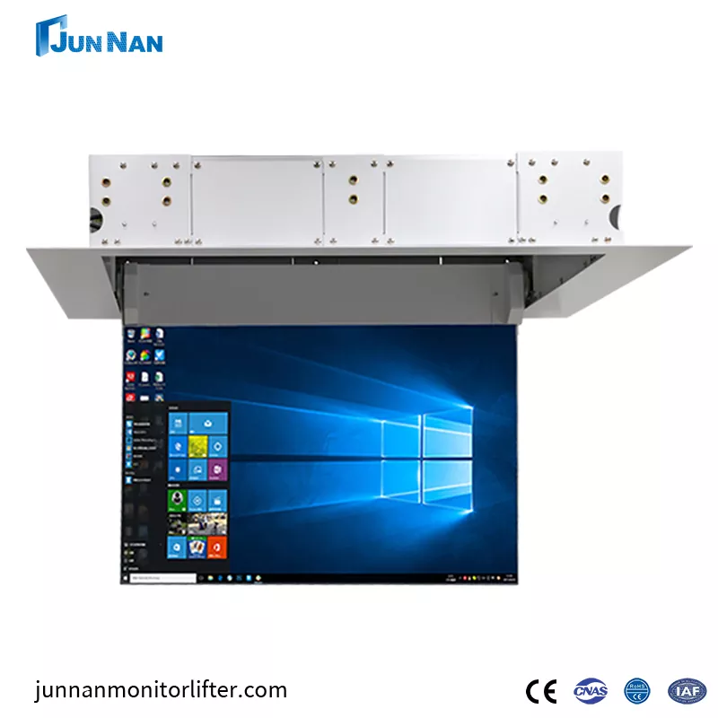 Guangzhou Junnan profesyonel bir Çin TV tavan kanatçık üreticisidir. Şık TV tavan kanadı esas olarak büyük toplantı odalarında, TV tavan kanadı düzgün kaldırma, pürüzsüz ve güzel, serbest kaldırma ayarı, elektrikli kaldırma, elektrikli uzaktan kumandalı kaldırmada kullanılır. Tavan Kutusu Flip Gizli Askı, şık ve güzel bir görünüm için genellikle tek parça kutu gövde ile tasarlanmıştır. Çalışması istikrarlı ve sessizdir, kurulumu kolaydır, kullanımı kolaydır ve büyük yüklere dayanabilir.